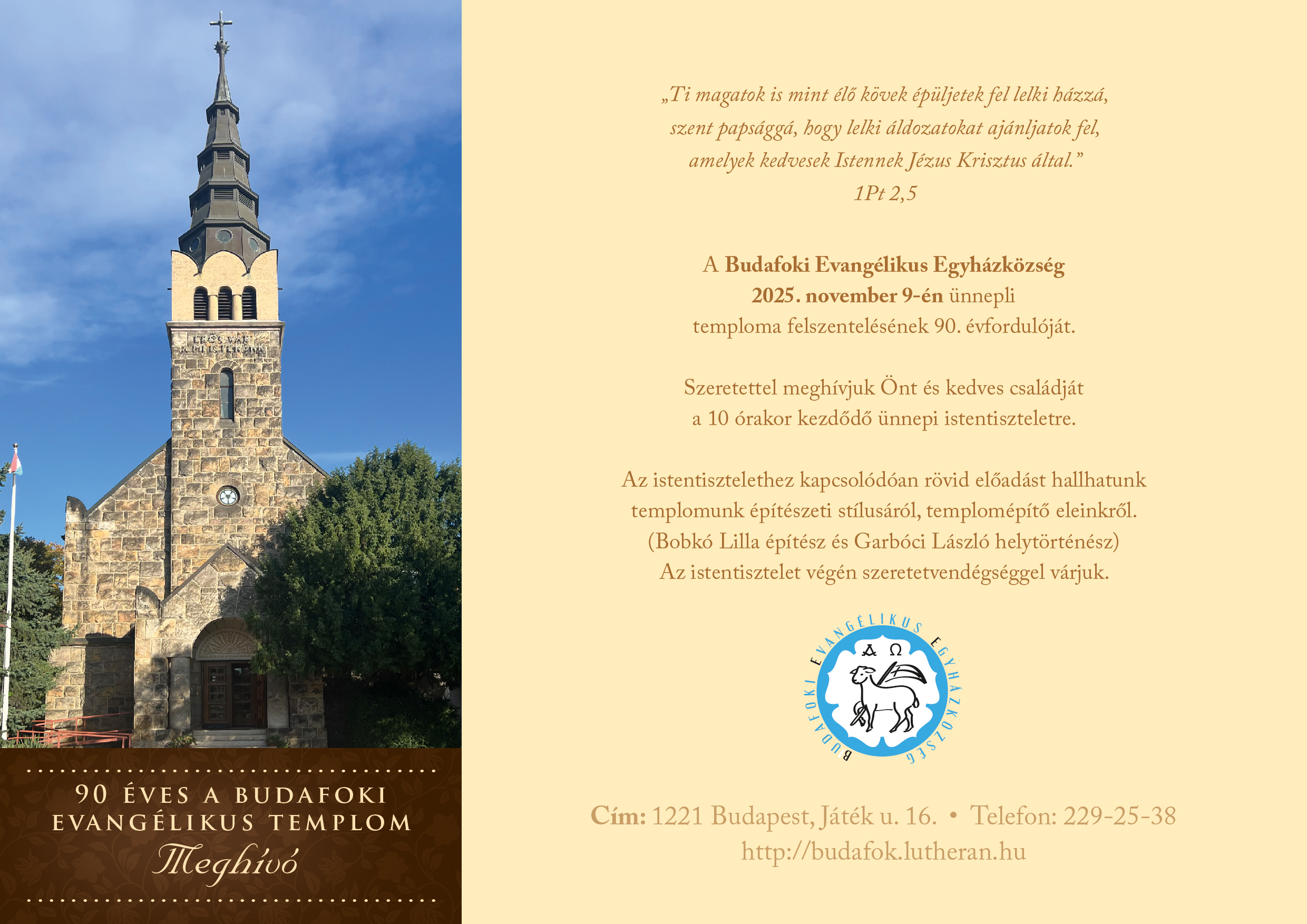 - Felszentelték a budafoki evangélikus templom virtuális orgonáját. További részletek…